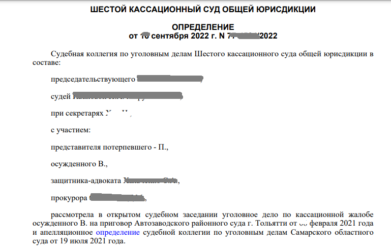 Шестой кассационный суд Самары адвокаты по кассации