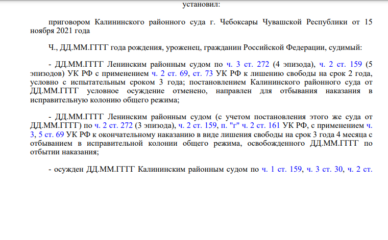 ч. 3 ст. 272 (4 эпизода), ч. 2 ст. 159 (5 эпизодов), по ч. 2 ст. 272 (3 эпизода), ч. 2 ст. 159, п. "г" ч. 2 ст. 161 УК РФ